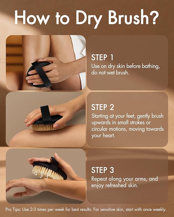 - Natural Exfoliating Body Brush: Made with 100% natural boar bristles to effectively remove dead skin cells. Dry brushing is a natural way to reduce cellulite, acne scars, and even those painful, unsightly ingrown hairs. It stimulates blood circulation and supports lymphatic drainage. Additionally, it deeply cleanses the skin, removing dirt, excess oil, and pore impurities, thereby improving overall skin health