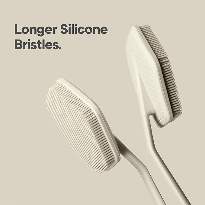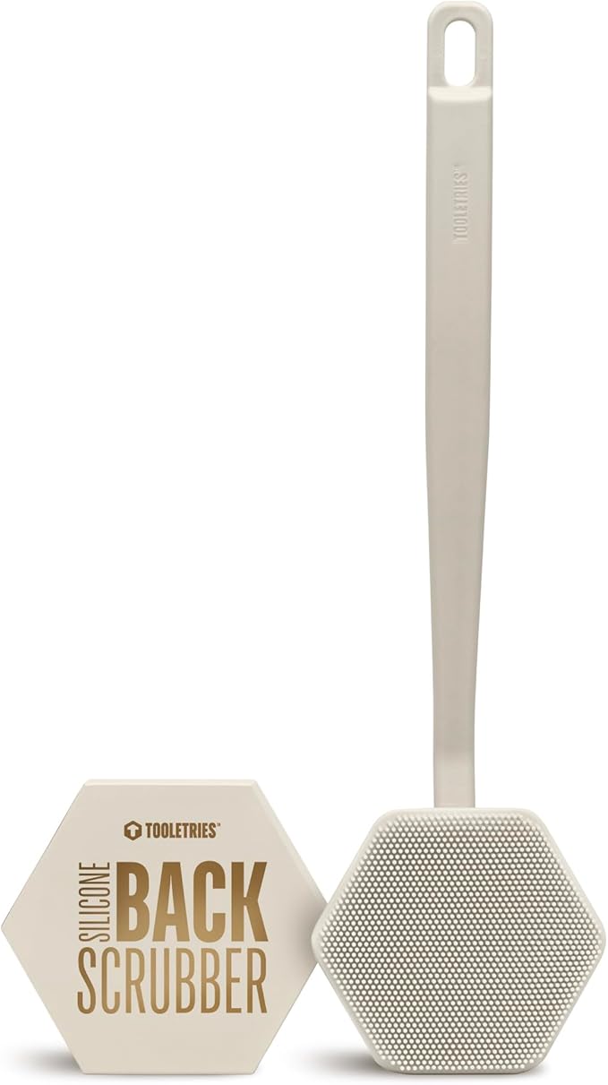 TOOLETRIES Silicone Back Scrubber - Exfoliating Shower Brush, Back Washer for Men, Durable Back Brush with Long Handle - Long Lasting Bath & Shower Accessories - Sand