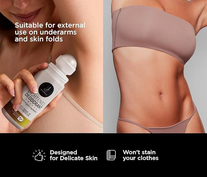 Lightened Natural Deodorant for Women & Men - Aluminum Free, Organic Ingredients, Skin-Brightening Formula - 24-Hour Odor Protection, Unisex, Alcohol-Free (75ml Roll-On)
