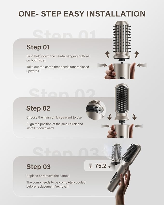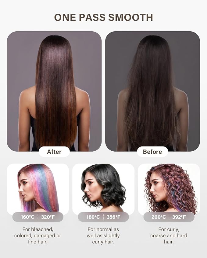 - Styling Tips: For optimal results, use slightly damp (not dripping wet) hair. Wait for the straightening brush to reach the preset constant temperature (ensure stable heat performance)ānote that it takes about 5 minutes to heat up to the maximum temperatureābefore styling. To create curls, hold the brush on your hair for a bit longer for better setting. Using a styling spray after styling will further lock in your hairstyle for long-lasting hold, delivering smoother hair and a more glossy finish.