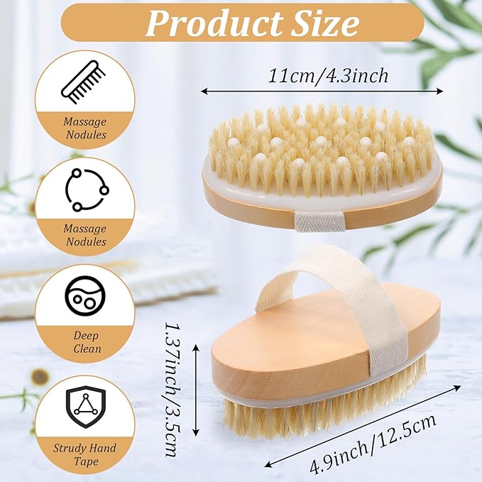 - Reliable Material: This dry brush body brush features natural bristles, a smooth, polished wooden handle, soft massage bumps, and an easy-grip canvas wrist strap; it offers the perfect balance of firmness and softness, leaving skin smooth and radiant while providing a soothing massage to muscles, resulting in relaxation and immediate comfort.