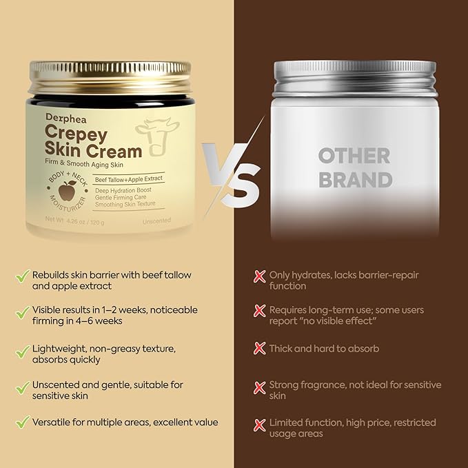 Crepey Skin Repair Treatment: Crepey Skin Repair Cream for Aging Skin with Pure Beef Tallow, Soluble Collagen & Apple Fruit - Advanced Crepe Fix Cream for Neck, Arms, Chest, Body - Unscented