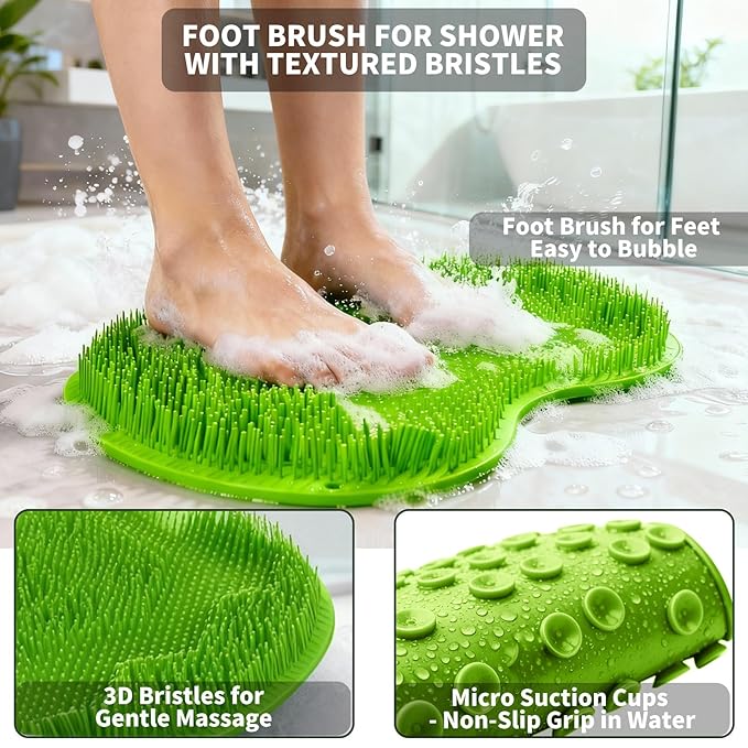 - [Universal Fit & Ideal Senior Gift] Flexibly fits most shower floors and bathtubs. This foot scrubber mat is easy to reposition, hang, or store. Made as a durable silicone scrubber, it provides a gentle and effective scrub during use. With its non-slip safety and comfort features, it’s both a practical shower accessory and a thoughtful gift for seniors to support confident, independent bathing.