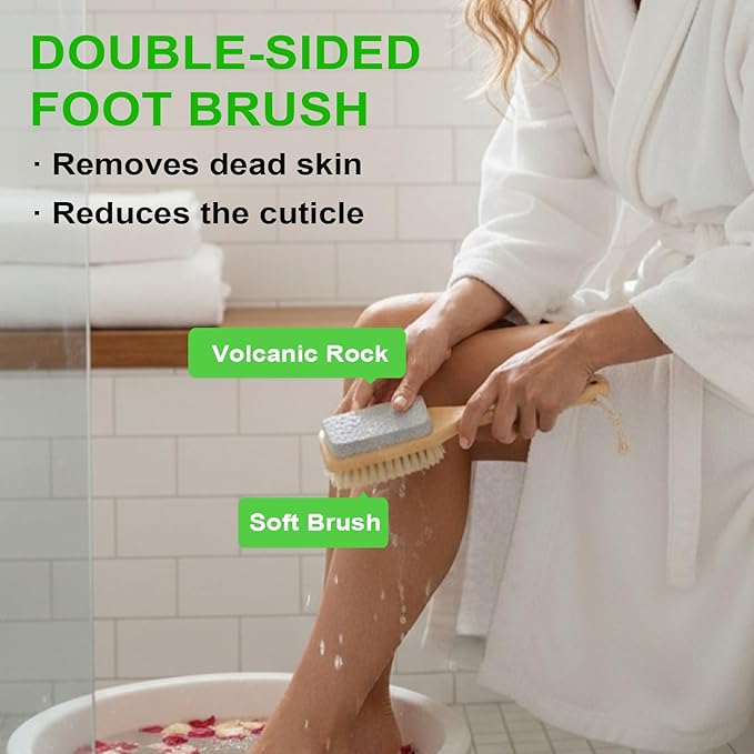 - đăPerfect As a GiftăThis complete set includes a long-handle shower brush, a handheld cellulite massager with natural boar bristles, a face brush, and a pumice stone with foot brush (pumice color varies). Ideal for wet or dry use, it meets all your skincare needs and suits various gifting occasions like Christmas, birthdays, and anniversaries.