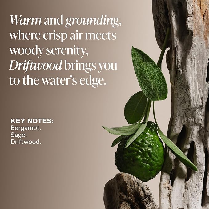 - DRIFTWOOD FRAGRANCE: Key Notes: Bergamot. Sage. Driftwood. Warm and grounding, where crisp air meets woody serenity, Driftwood brings you to the waterβs edge.