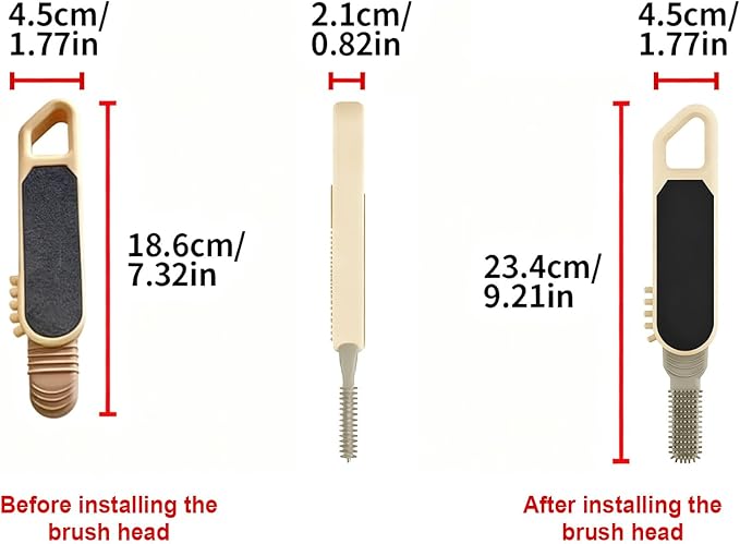 - Dual-Sided Design with Hidden Perks! One side features an aggressive texture for removing calluses, while the other is smoother for polishing. The cleverly hidden foot brush detaches for detailed cleaning, making it a 2-in-1 foot scrub brush and foot file. It's a complete foot care kit in one tool.