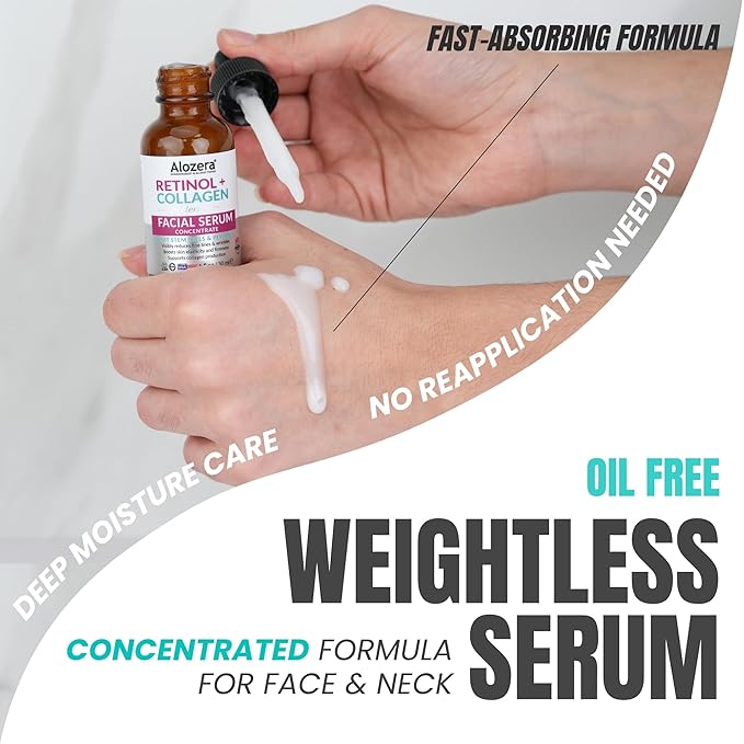 Alozera Retinol Collagen Firming Body Lotion (2-Pack) and Retinol Collagen Serum with Stem Cells – Hydrating and Firming Skincare Duo for Face, Neck and Body, Lightweight, Fragrance-Free, Made in USA