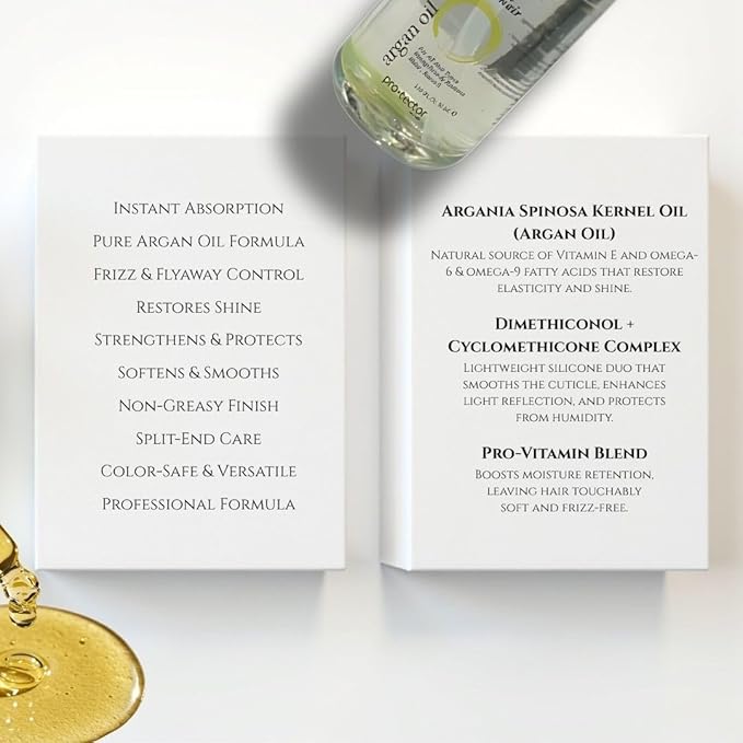 - Instant Absorption: Lightweight Argan Oil serum absorbs immediately into the hair, smoothing frizz and flyaways without residue.