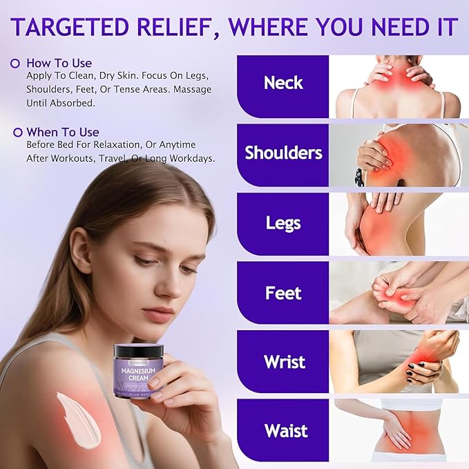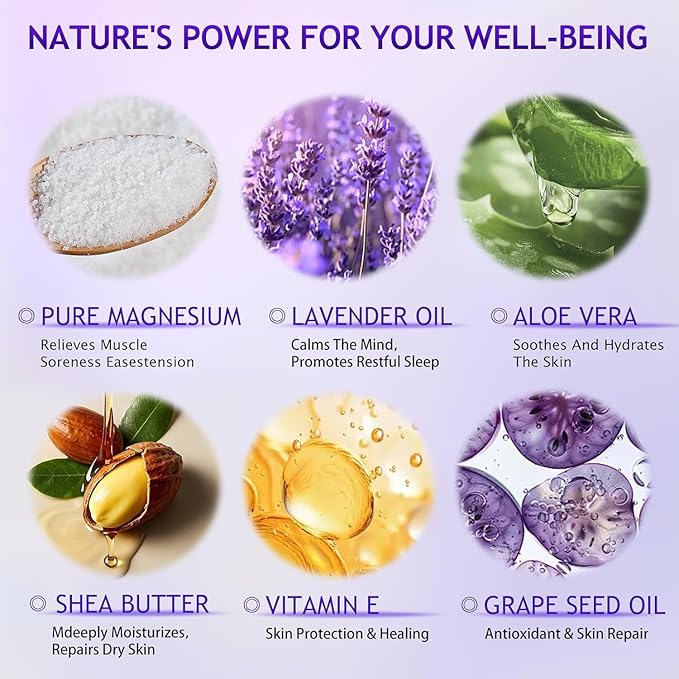 - Simple Formula & How to Use — Magnesium with skin-nourishing moisturizers; Unscented or Light Lavender option. Apply to clean, dry skin 1–2× daily.