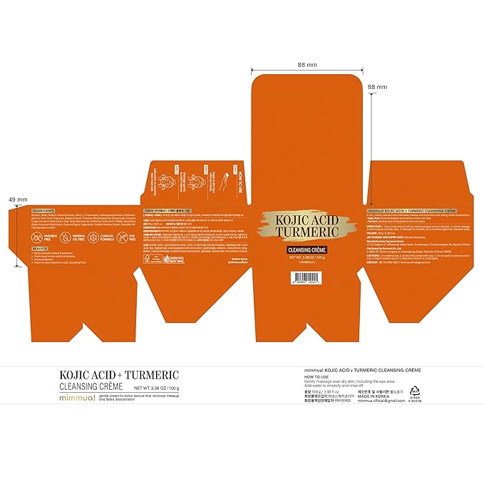 KOJIC ACID TURMERIC CLEANSING CREME| Balm to Oil Cleanser | Makeup Remover Cleansing Cream | No Eye Stinging | Helps Even Tone & Fade Hyperpigmentation w/Consistent Use 100ml / 3.38 Fl Oz