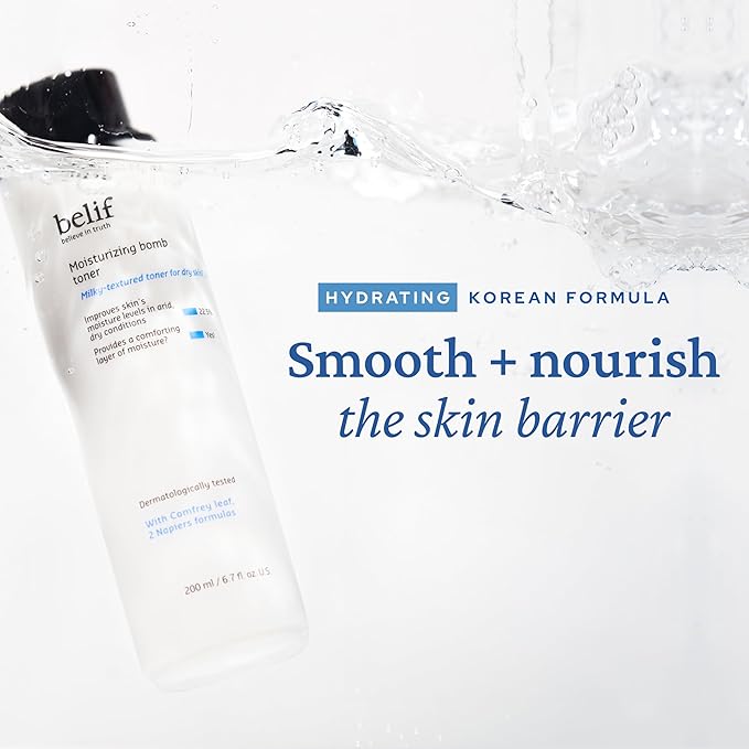 belif Niacinamide Hydrating Toner – Aqua Bomb Lightweight Cooling with Hyaluronic Acid, Soothing and Balancing Formula, Skin Barrier Repair, Korean Skincare (6.7 Fl Oz (Pack of 1), Milky Toner)