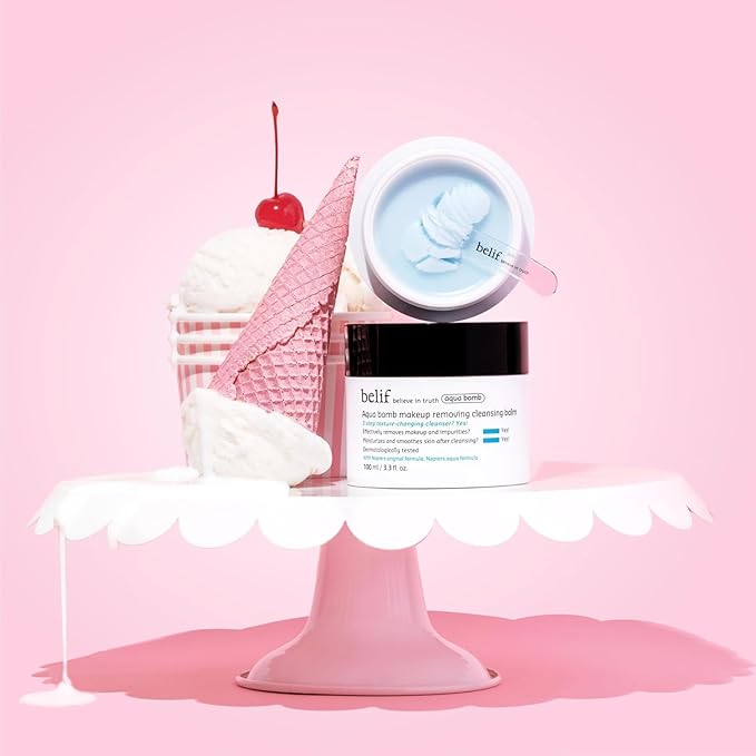 belif Aqua Bomb Cleansing Balm Makeup Remover, Hydrate & Deep Cleanse in 1 Step, Melt Away Makeup & SPF, Balm to Oil Cleanser Formula, No Oily Residue, Korean Skin Care (3.3 fl.oz., New Formula)