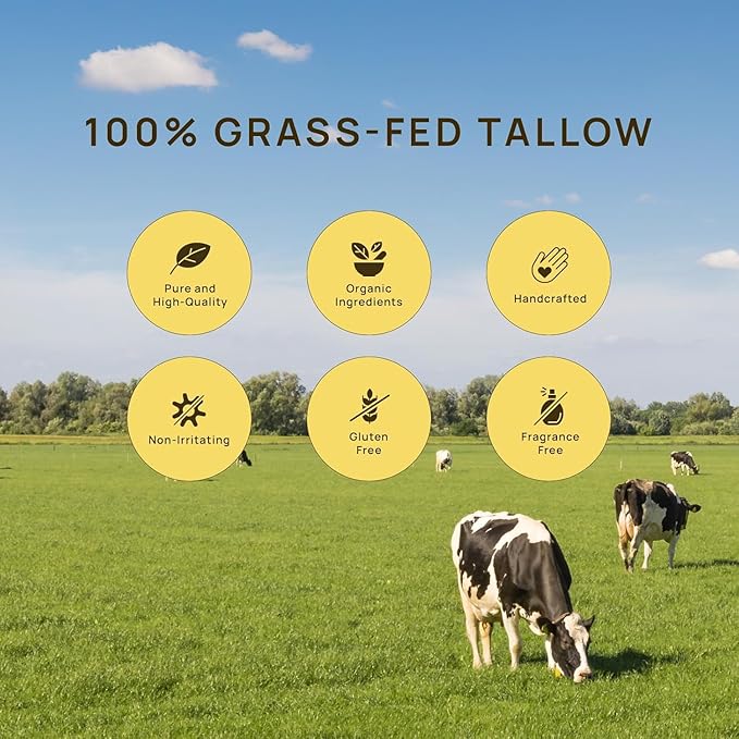 - Whipped Cloud-Like Texture: Experience our unique air-whipped tallow balm—so light it glides onto skin effortlessly. It creates a protective yet breathable layer that delivers deep moisture to face, hands, and body.