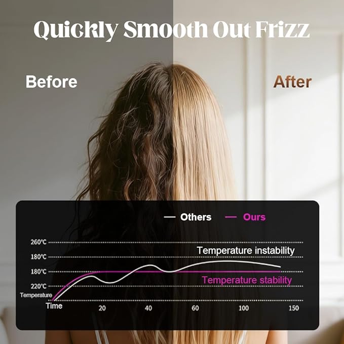 - Dual-Use Styling for Any Look: More than a straightener—this portable straightener brush combines a hot comb and flat iron for straightening, smoothing, or adding soft curls in seconds. Perfect for versatile hair styling.