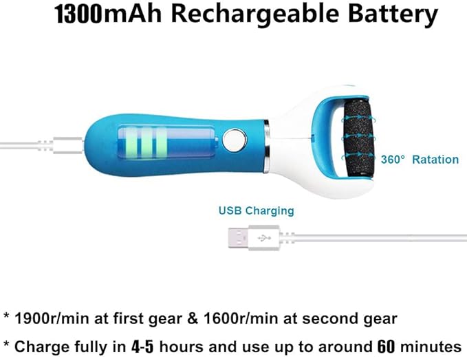 - Easy to clean: 2 rollers for soft and hard callus, also easy to replace and clean the roller of foot file. But please don't immense this foot care device into the water or shower it