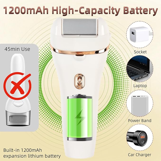 - 【Easy to Use and Clean】Ergonomic design, easy-to-grip handle, with light body, easy to use. The foot dead skin remover has IPX4 full body waterproof design, portable and wireless, it can be used at home and outdoors.