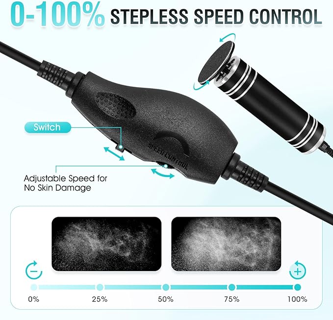 - Upgraded Stepless Speed Control: Tailor your callus removal experience with fully adjustable speeds ranging from 0 to 1000 RPM. Whether you're tackling stubborn calluses or gently buffing sensitive areas, the adjustable speed enhances comfort and precision. Perfect for all skin types, making your foot care routine more enjoyable and efficient